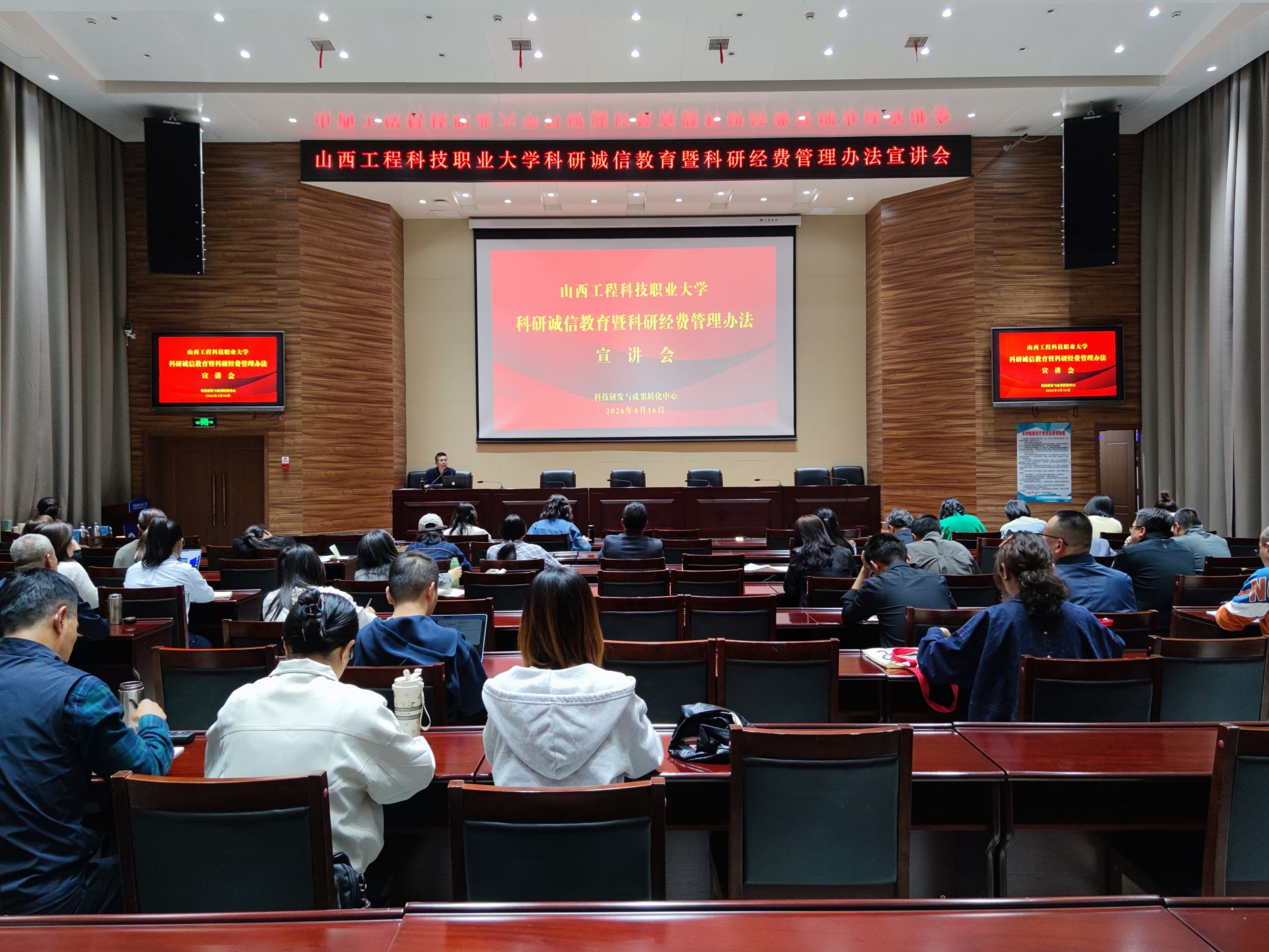 为持续增强我校教职员工科研诚信意识与自主管理能力,防范科研失信风险,2026年4月16日下午,科技研发与成果转化中心会同财务部在一号行政楼一层会议室,组织召开科研诚信教育暨科研经费管理办法宣讲会,各院部科研负责人、产教研办公室负责人及科研骨干70余人参会。