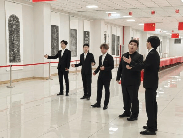 音乐舞蹈学院党委书记段永慧同志带领大家现场参观学习了一百多幅英烈碑刻拓片,让大家深刻感受到革命先烈的英勇事迹和伟大精神,进一步激发了大家的爱国热情和社会责任感。展览馆内展示了大量珍贵的历史拓片和革命文献资料,生动再现了革命战争时期的艰苦岁月和革命先辈们的英勇事迹。在学生们最真挚的歌声中,我们表达了对革命先烈的敬仰、感受到对革命精神的传递责任与使命。